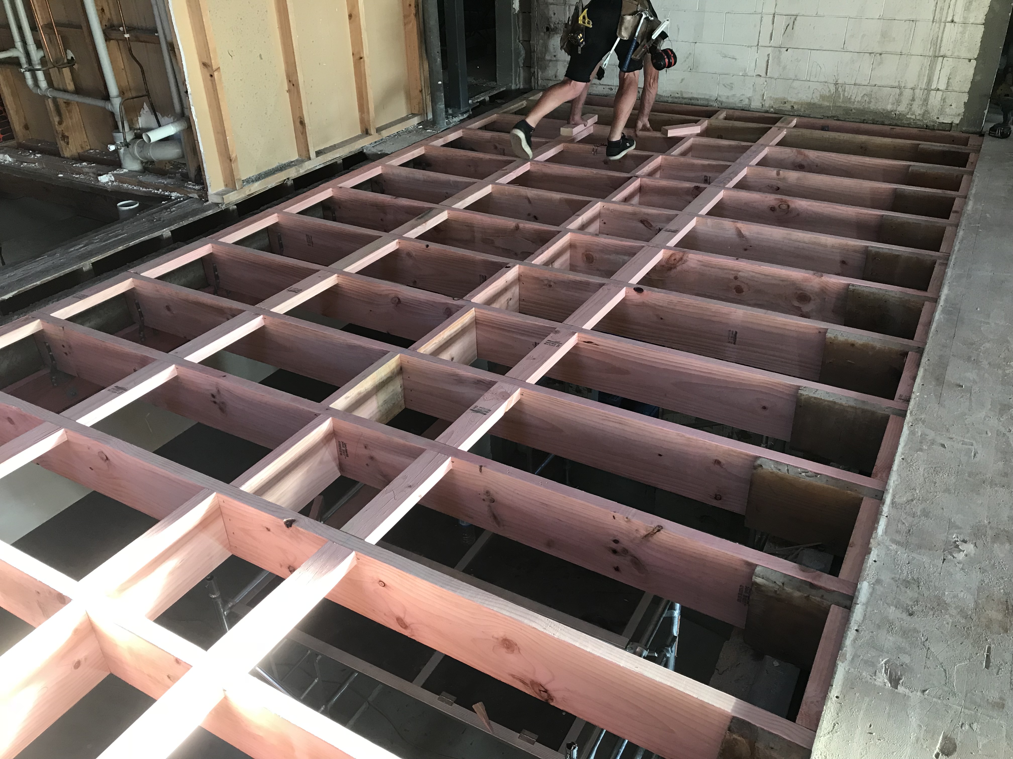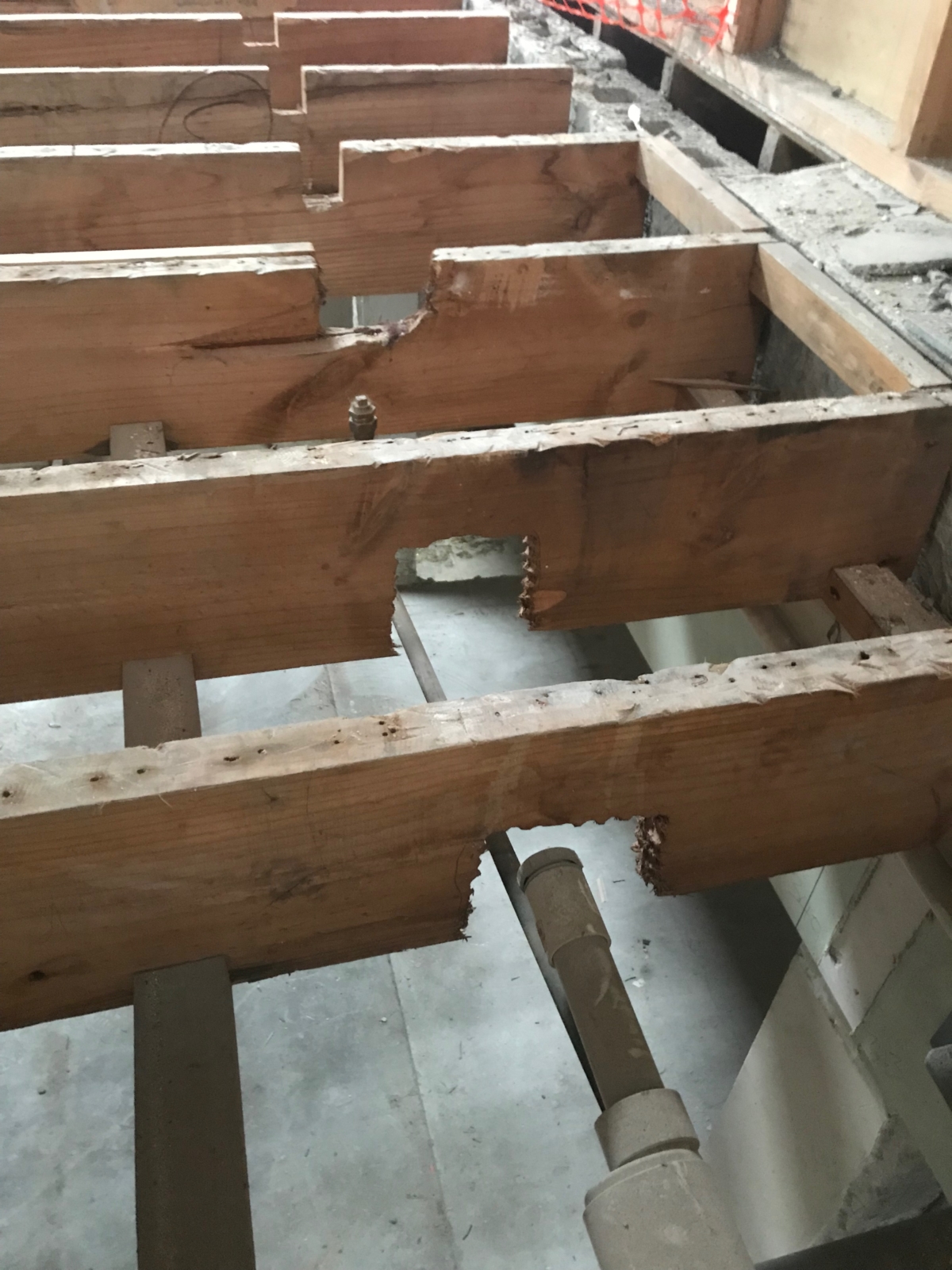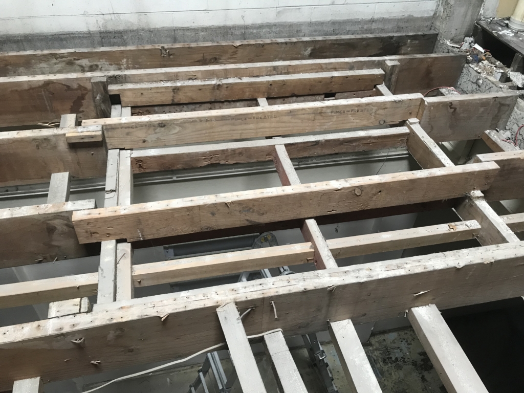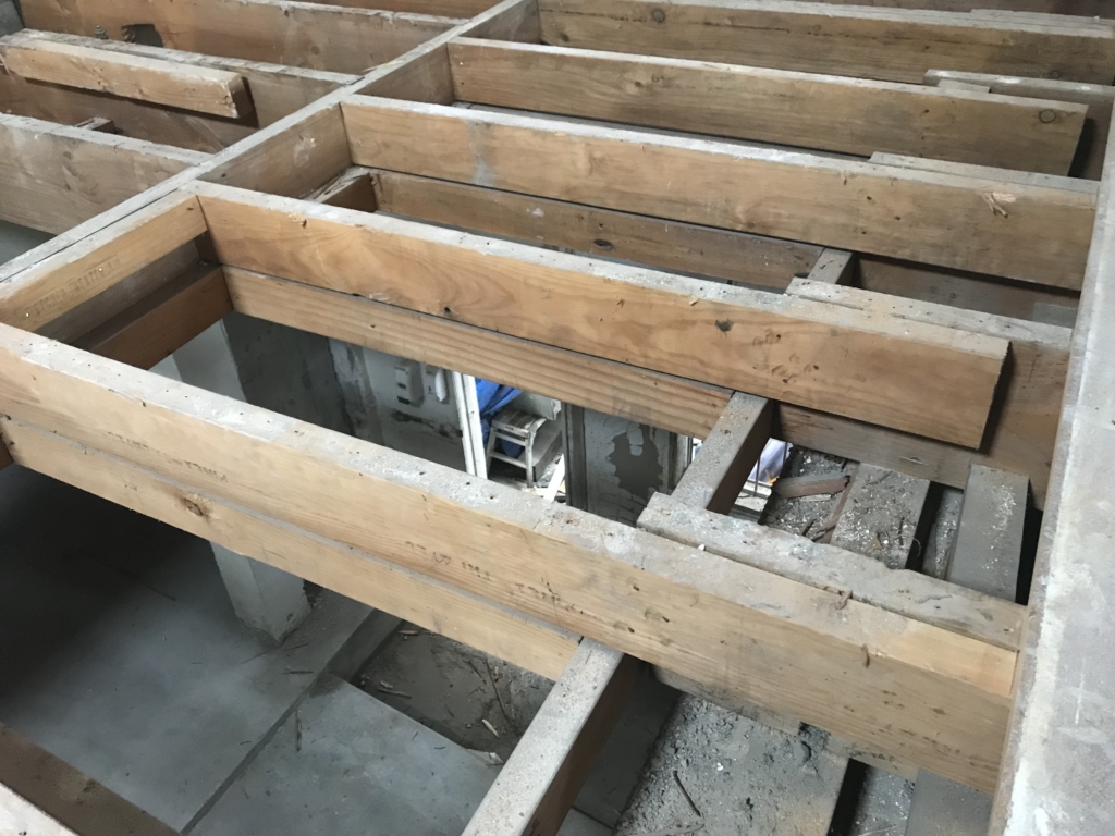 19/2/18 – During the removal of the ground floor ceilings , our boys found some areas of concern with the floor joists on the first floor. The decision was made to completely remove the section of floor and re frame in accordance with our onsite engineers instruction.